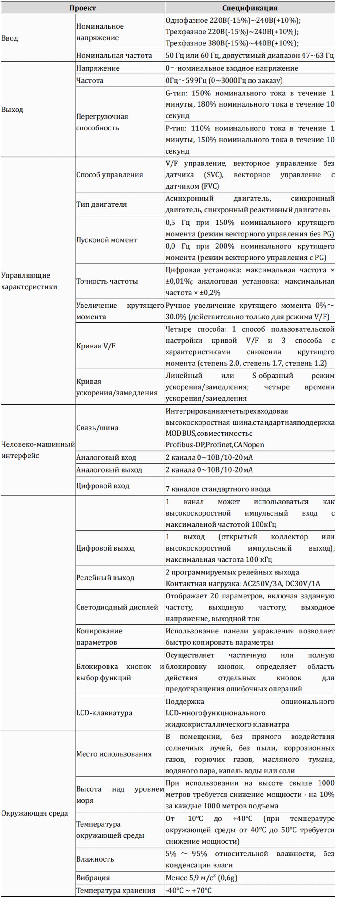 - Поддержка функций обнаружения температуры двигателя PT100/PT1000, обеспечивает более эффективную защиту двигателя.